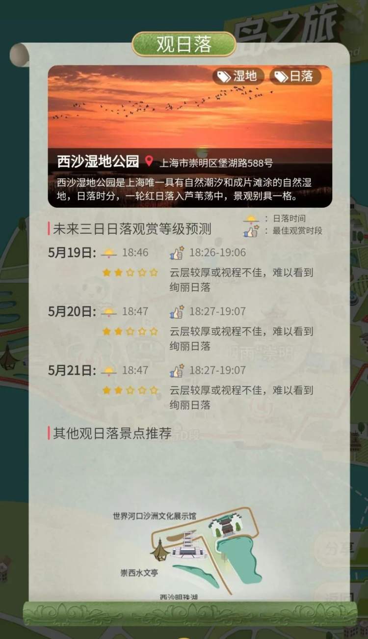 今天,崇明气象局联合上海市气象服务中心发布了一款特别的赏花、游岛地图,天气预报精细到每个场馆&水陆干线,还可根据气象条件推荐景点,领略不同天气下的崇明美景。