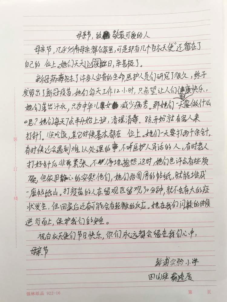 在采访了医护人员、志愿者、保洁工阿姨等“最美妈妈”后,小记者们有感而发: