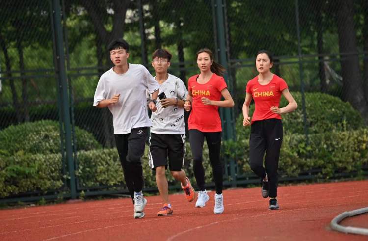 400米跨栏、800跑、跳高……每天下午3点,华东师范大学的田径赛场就显得格外热闹,校田径队的队员们完成了一天学习,开始投入到高强度的训练当中。田径比赛大多都是个人项目,但在田径场上,队友之间却时不时在互相加油鼓劲,“加油!”“再来一次!”“再坚持跑一圈!”“棒棒棒!”