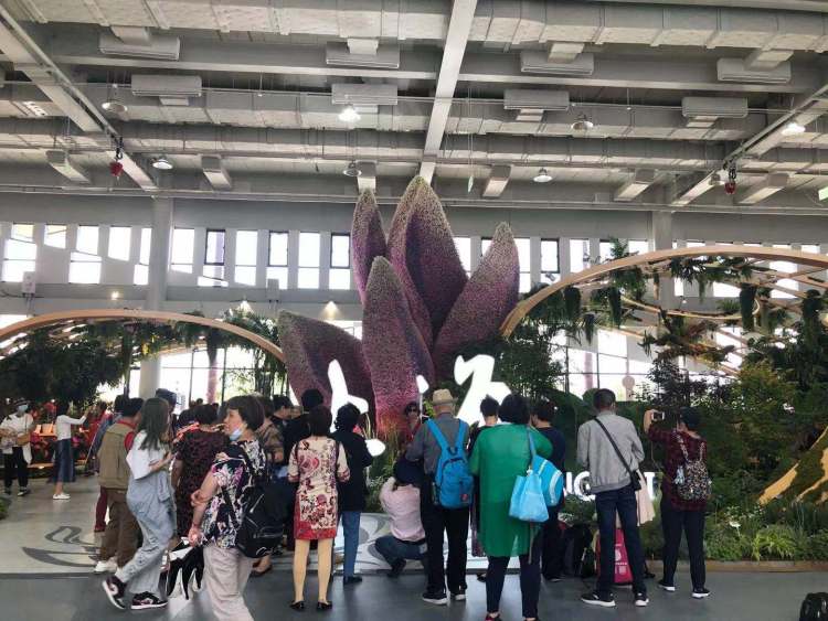 下午3点,记者看到,花博园北区复兴馆里,参观者排队进入馆中,根据语音提示配合地戴上口罩,有序参观。
