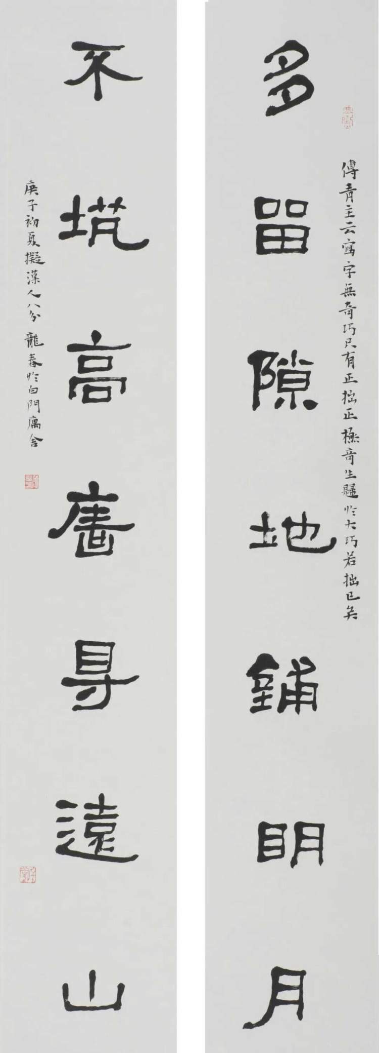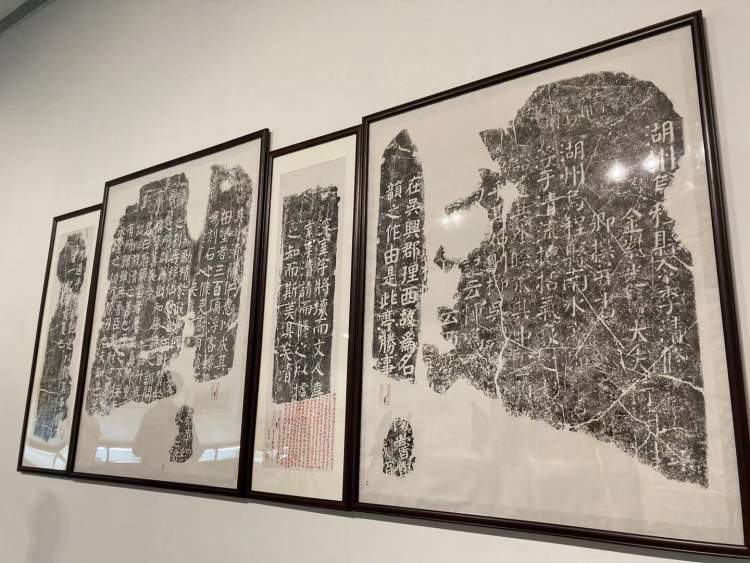 “邻古”部分最重要的展品是香港近墨堂书法研究基金会董事长林霄先生在颜真卿碑石《西亭记》拓片上的题跋。这一颜真卿碑的原石由林霄先生花巨资购藏后,慷慨捐赠给他的母校浙江大学艺术博物馆,一时传为收藏界佳话。同时因原石残损较重,所以传拓拓片极少见,拓本上的累累题跋也足见题者深厚的学养。通过临习前人碑帖不断自我提高,是学人书法重要的内容。
