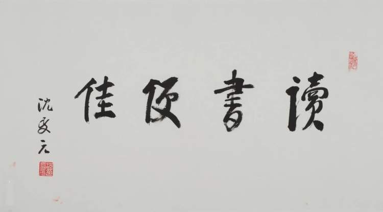 展览策展人、华东师范大学古籍研究所副研究员丁小明表示,本次展览从书作内容上,分为“勉学”、“邻古”、“怡情”、“写心”四个部分。因为学人的本质还是学习,所以“勉学”部分主要指学者书写的涉及治学、读书、劝学的内容,如“读书便佳”、“开卷有益”这样的内容,比较有代表性的是97岁高龄的版本目录学家沈夑元老先生所写的4幅书作都是跟劝学有关,沈老先生至今还每天坚持去图书馆看书,可谓好学一生,人学合一。