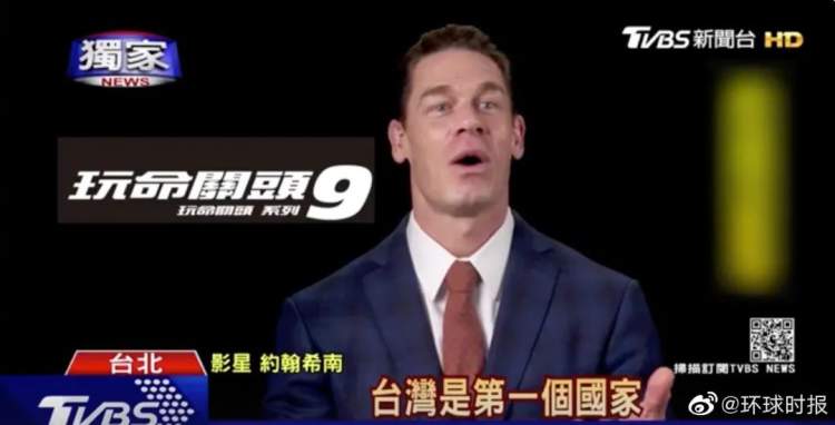 根据引起争议的采访视频可以看到,约翰·塞纳说“台湾是第一个国家,看到《玩命关头9》(《速9》)。”