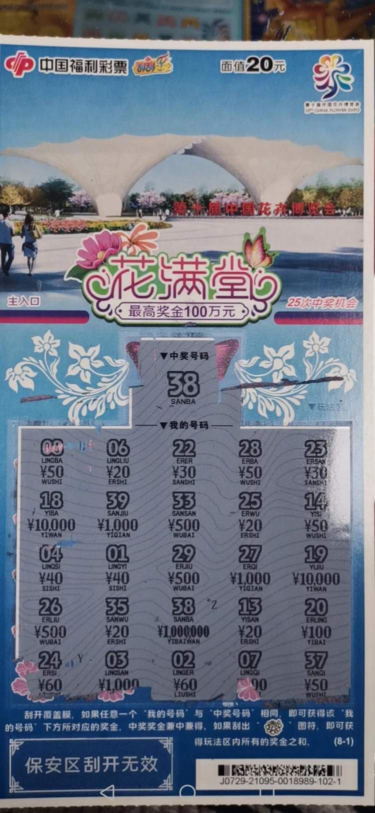 现在正是花博会主题即开票的派奖活动期,中100万还能加派100万,这张彩票可以兑奖200万元!