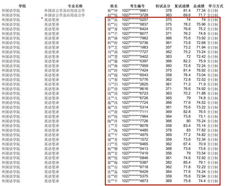 该校本周一重新公示的2021年拟录取硕士研究生名单中,英语笔译录取人数只有38人。