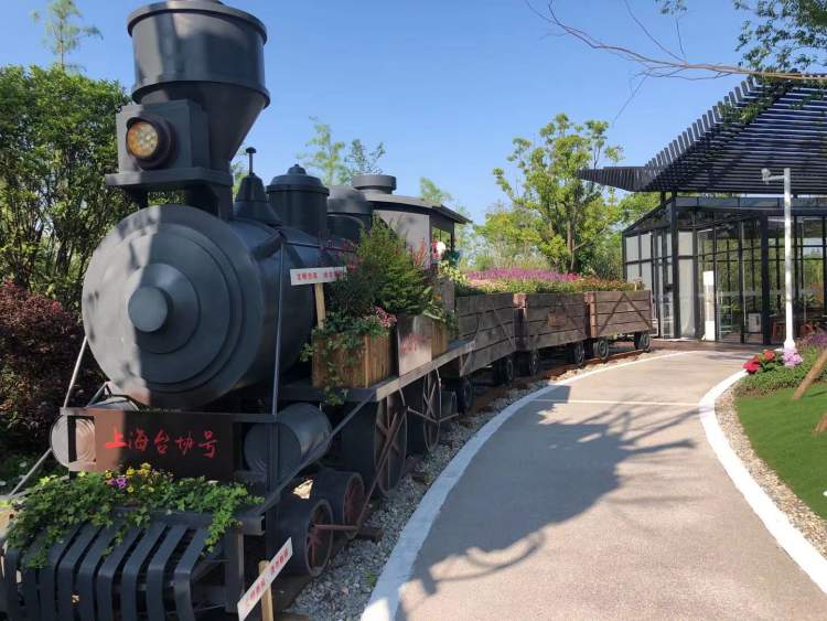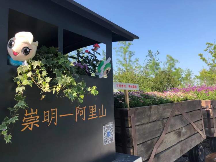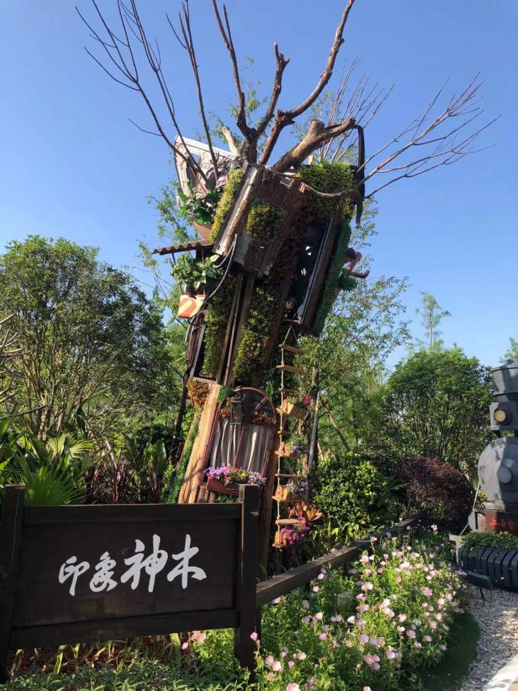 台湾园的地标性景点是台北101塔和阿里山。只不过,这里的101塔是植物搭建而成,取名“101花塔”。阿里山小火车可是往返崇明与阿里山的呢,花博会吉祥物“圆圆”“梦梦”从火车头里探出身子,招呼大家赶快上车。展区还用废旧材料制作了一棵阿里山神木,传达生态环保的理念。