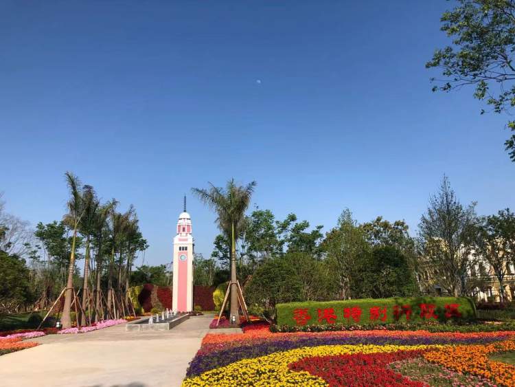 来到香港展园,模仿尖沙咀钟楼的构筑物位于中央,两旁种植了洋紫荆和丝木棉等特色植物。尖沙咀钟楼建于1915年,百多年来见证了香港的历史变迁,是标志性建筑物,现已列为香港法定古迹。