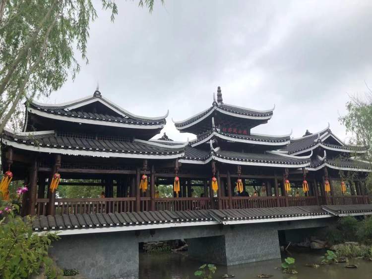往里走,来到“壮乡风雨桥”,这是少数民族青年男女对山歌的地方,对上了,就抛一个绣球过去。
