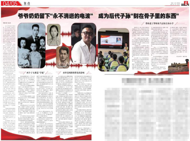 我已经读了5月20日您发表在《新闻晨报》上的文章——《爷爷奶奶留下“永不消逝的电波”成为后代子孙“刻在骨子里的东西”》。