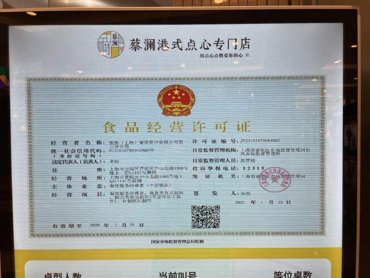 6月9日,上海在全国率先实现电子营业执照和食品经营许可电子证书联动应用。抱抱(上海)餐饮管理有限公司第二分公司、上海谭沁餐饮管理有限公司、上海罗可餐饮有限公司等3家食品经营企业店铺的显示屏上,醒目地亮出了电子营业执照和食品经营许可电子证书。