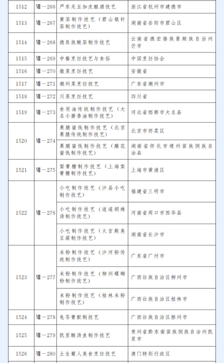 除了柳州螺蛳粉制作技艺,还有上海梨膏糖制作技艺、沙县小吃制作技艺、桂林米粉制作技艺、火宫殿臭豆腐制作技艺、逍遥胡辣汤制作技艺等上榜。