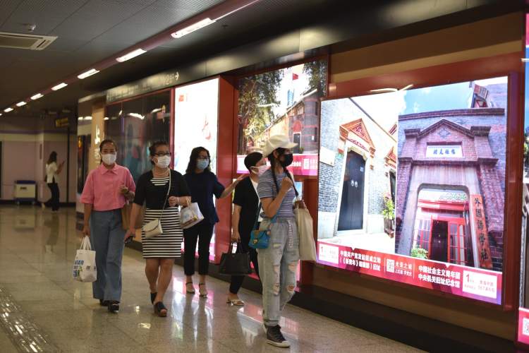 另外,上海地铁着力将新天地站打造成为迎接建党百年的重点主题车站,通过“主题角”“回顾角”“文化角”“演艺角”等四大展区,利用平面展示、实物展陈、书画作品展示以及演艺片段播放等形式,让乘客在出行中感受中国共产党百年来走过的光荣之路。在地铁陕西南路站换乘通道内,中国航海博物馆、江南造船集团、上海地铁共同举办“红色记忆·蓝色航海”展。