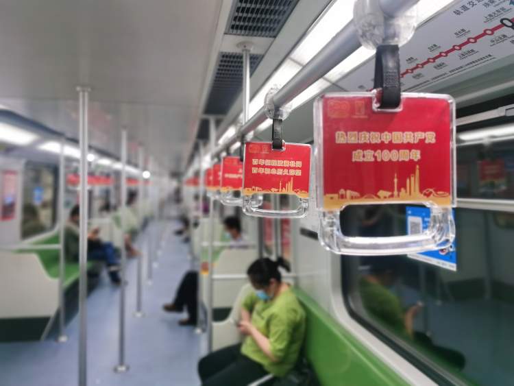 乘客走进地铁车厢,可以从车厢的布置中感受到满满的红色文化氛围。近日,上海地铁启动开行1、2、4号线“百年号”红色主题列车。同时,“永远跟党走”红色文化进地铁系列活动在人民广场站拉开帷幕,发布“庆祝中国共产党成立100周年”地铁主题纪念票卡、《“初心驶发地铁行”上海地铁红色文化地图》。
