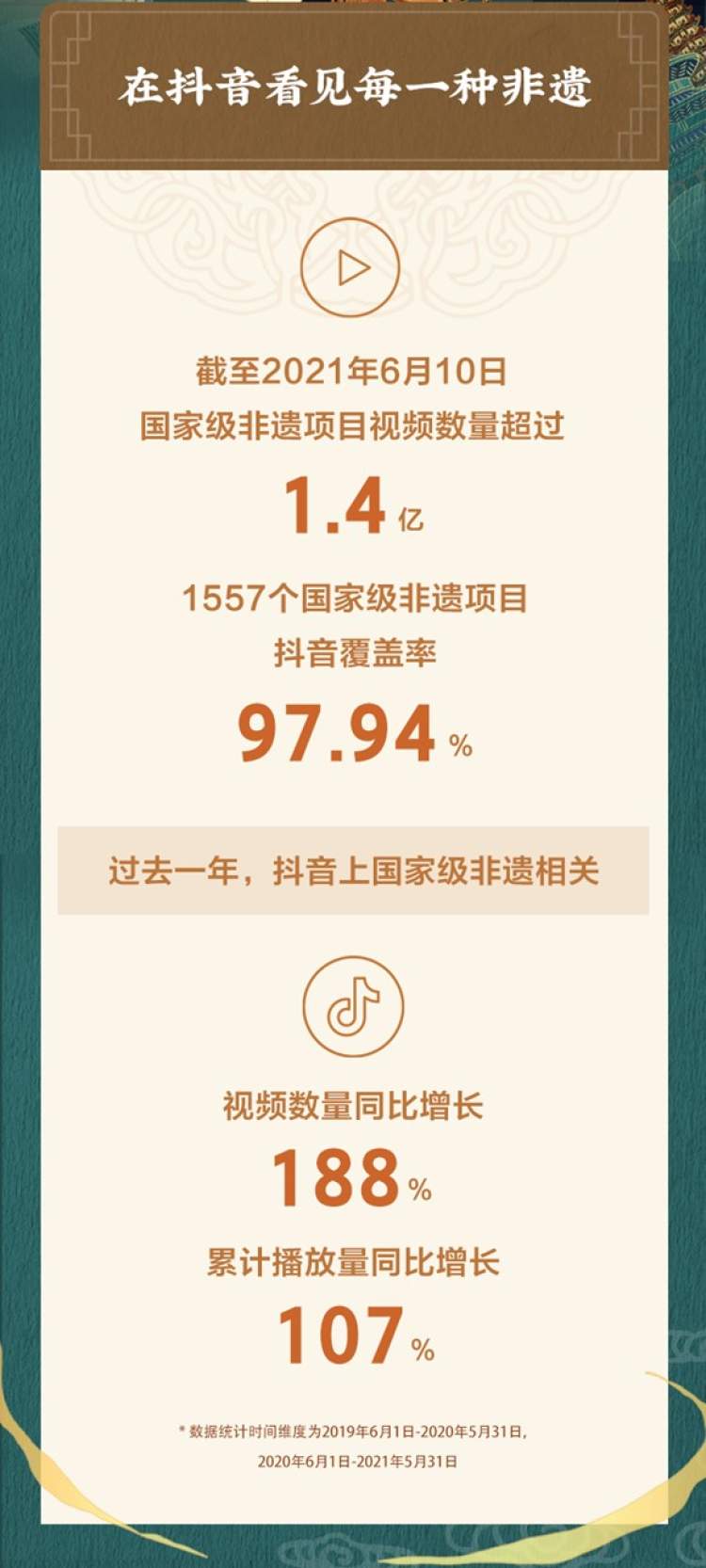 在第16个文化和自然遗产日前夕,抖音发布非遗数据报告。