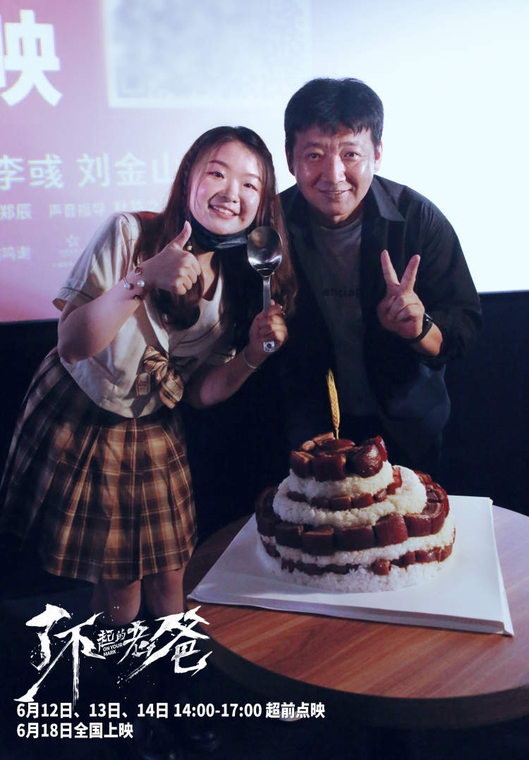 随后现场也出现了一个非常有趣的环节,一位观众表示电影中肖大明为了给儿子买钢琴舍不得吃肉的情节,让自己非常心疼,所以专门为肖大明的扮演者王砚辉送上了一份特别礼物——红烧肉蛋糕以及一把“干饭勺”,满满的卡路里让人王砚辉表示“终于可以开荤了”。
