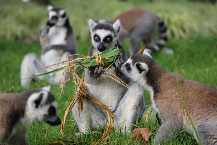 环尾狐猴最爱甜甜的水果,枕头形状的粽子裹满了香蕉、苹果等甜味十足的水果。女猴王带领着它的子民蜂拥而上,将一盆粽子重重包围,先是好奇地嗅了嗅,甜甜的水果香让环尾狐猴欲罢不能。