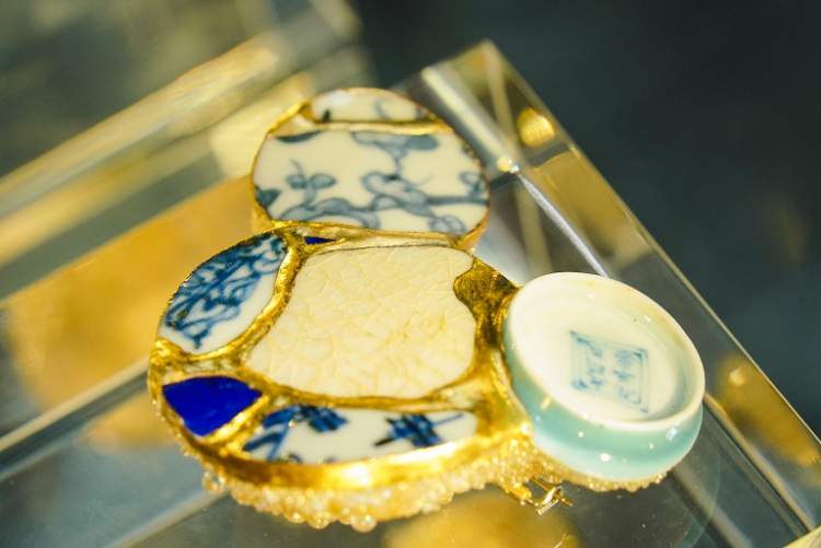 温一沛与纪烨的作品《米奇与我》重现了艺术家在米奇陪伴下度过的童年时光,以艺术的方式展现过去与现在之“我”的和解;在李钢的作品《蜜蜂》中,艺术家用糖制“镜片”替换了眼镜、放大镜、窗户和电视机上的镜片玻璃,并透过糖镜来翻拍他人记录下的美好世界,在观众与现实之间构建出一道“甜蜜滤镜”;陈漫的作品《泡脚米奇》中,艺术家将具有中国特色的养生泡脚文化和看电视以诙谐的方式结合起来,从而突显出米奇形象中蕴含的“跨文化、跨地域”特质;杨牧石的《拼接—片》将米奇这一动画经典图像与当代都市文明相连接;宁晓莉的《奇·迹》借用传统金缮工艺,将中国各个窑址的瓷器残片嵌合重构为米奇头像,以此赋予米奇将散落于不同地域、不同时代的历史碎片重新聚合起来,赋予全新生命的文化意义。冯翰婷的作品《长耳朵的自行车轮》将日常生活物品解构并重组为具有抽象感的米奇形象,使之与现代艺术遥相呼应。