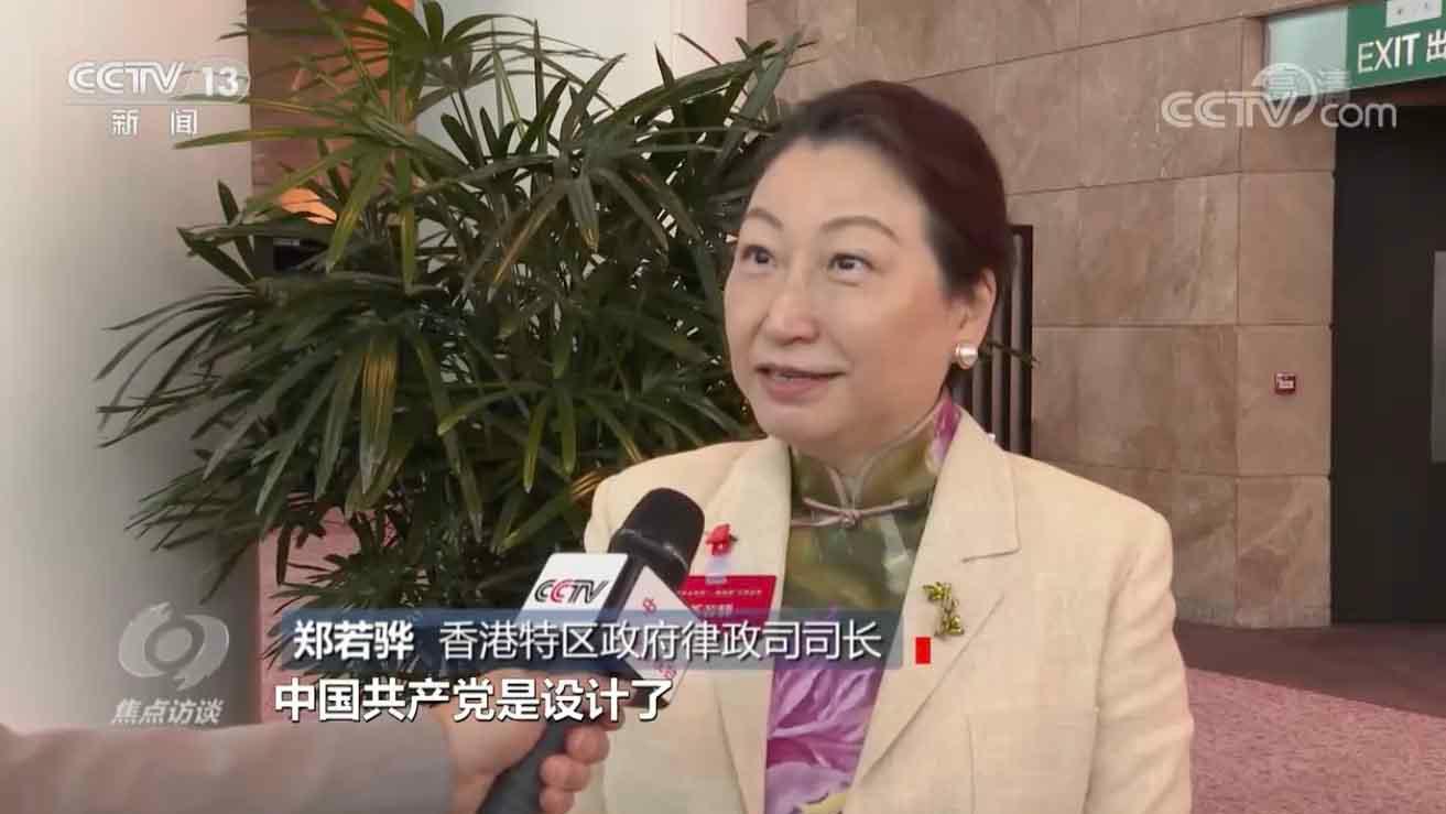 香港特区政府律政司司长 郑若骅:中国共产党按照宪法和基本法把香港的根本抓得很好,很好地利用中央事权,比方说定立了香港国安法,还有最近完善的选举制度,这些都是中国共产党领导下非常好的举措,让我们可以在“一国两制”下行稳致远。