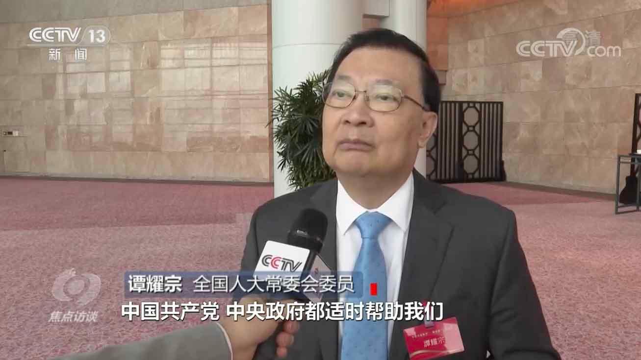 全国人大常委会委员 谭耀宗:每次香港遇到重大问题,我们本身不能解决的,中国共产党、中央政府都适时帮助我们。特别是2019年反“修例风波”,引起了外国势力插手,让香港发生重大暴乱,后来中央通过立法手段,有了维护国家安全法,香港社会马上稳定了,最近这一年多,香港社会恢复过来了,人心稳定了。