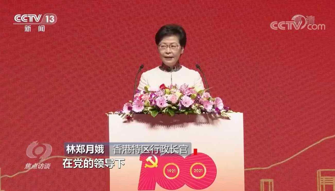 香港特区行政长官 林郑月娥:过去两年,香港面对前所未有的政治冲击,出现了危害国家安全的极大风险。在党的领导下,中央始终依照宪法和基本法办事,坚持“一国两制”原则,解决香港问题,颁布实施香港国安法,及时让香港由乱向治,完善特区的选举制度,确保“爱国者治港”。在极不容易的过程中,中央坚守对“一国两制”的初心,充分展现了中国共产党对理想的坚持、对信念的坚定和对制度优势的自信。