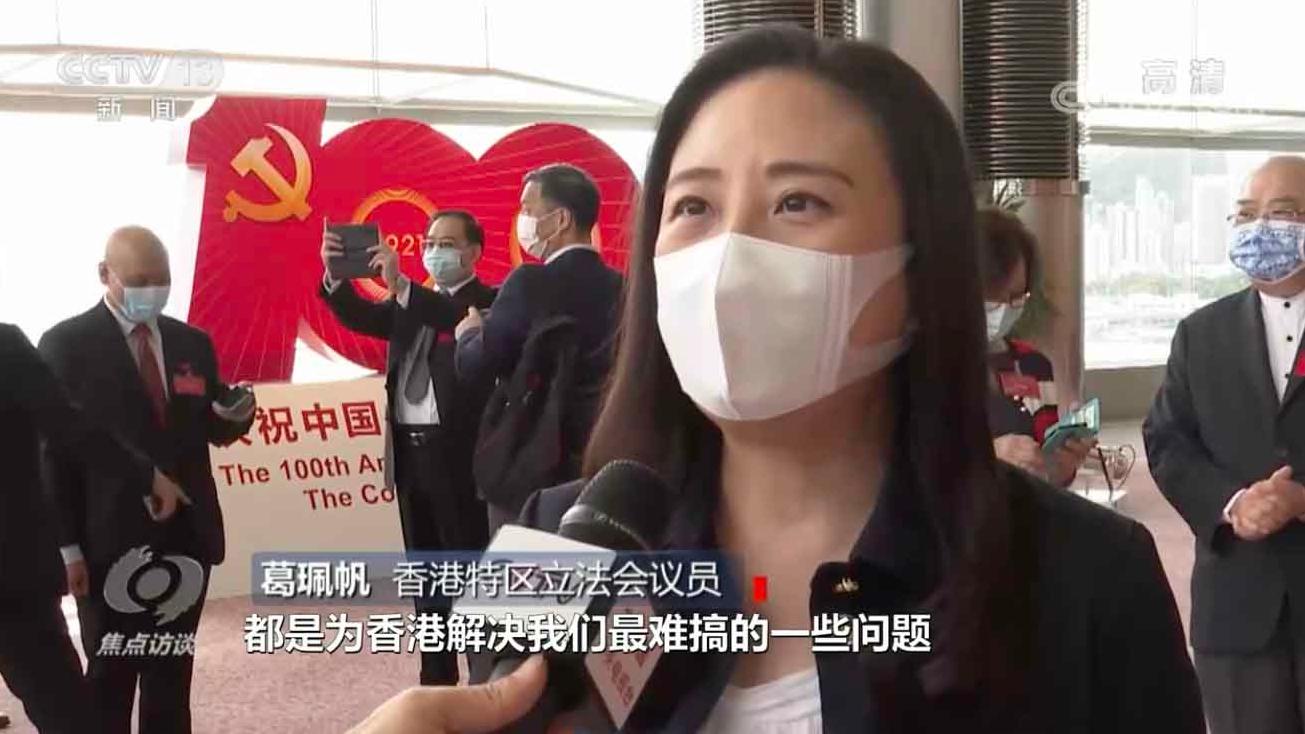 香港特区立法会议员 葛珮帆:回归以来面对的所有问题,都是共产党出手解决的。国安法也好,完善香港的选举法律也好,都为香港解决了最难搞的问题,所以共产党是香港最大的后盾,可以推动香港继续往后发展下去。