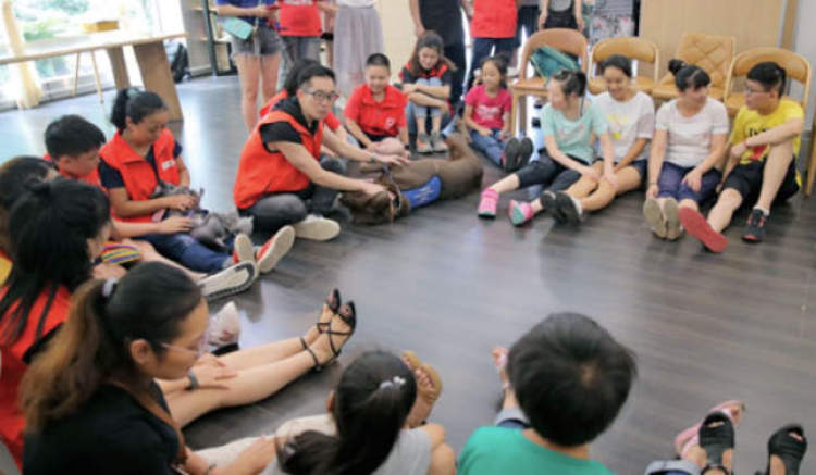吴起和他的团队开始设计相应的课程,让狗狗做为沟通对象,帮助有沟通障碍的孩子练习沟通的能力;让狗狗作为陪练,通过扔球、扔飞盘的游戏,锻炼孩子的协调能力;通过抚摸、投喂狗狗,帮助孩子进行握拳、伸手、模仿等能力的训练。
