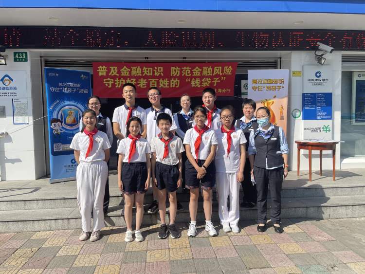 近日,浦东模范中学银杏小队的“金融小卫士”们走进建行位于浦东新区凌河路上的营业网点,与银行的工作人员一同开展“普及金融知识 防范金融风险 守护好老百姓的‘钱袋子’”公益宣传活动。