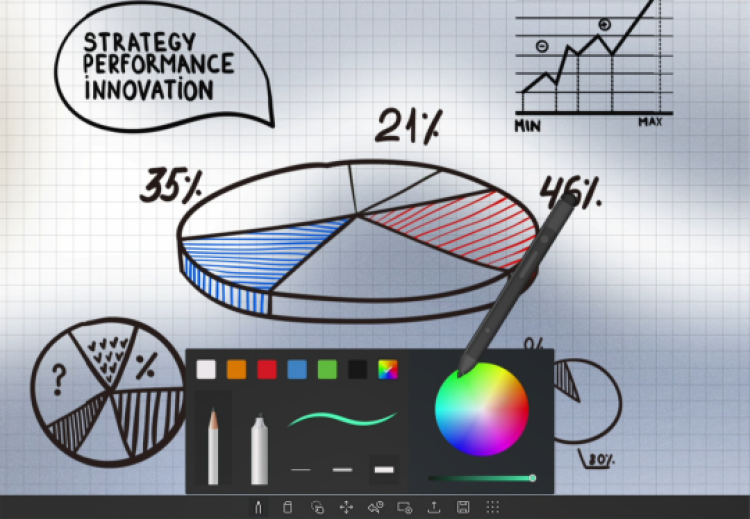 基于此,底部及悬浮工具栏的跟随设计,方便用户在书写时随时调取各种功能,不仅能更改书写颜色、笔锋粗细,还能将语音转化为文字呈现于白板之上,便捷地录入长段内容,大大提升书写效率。