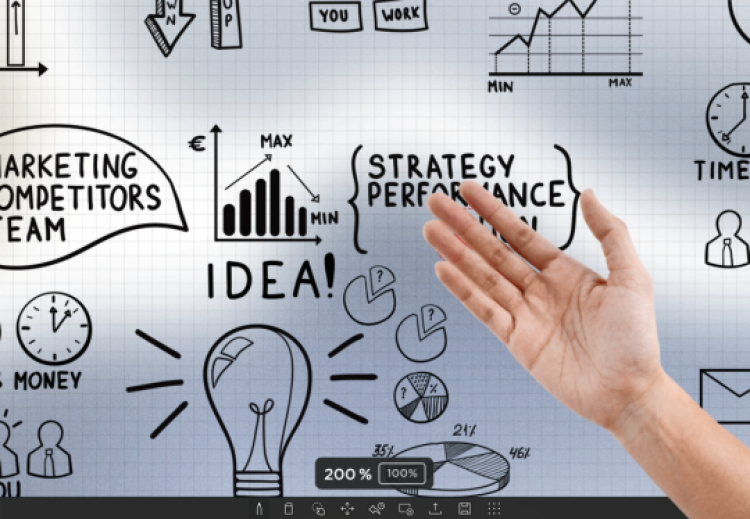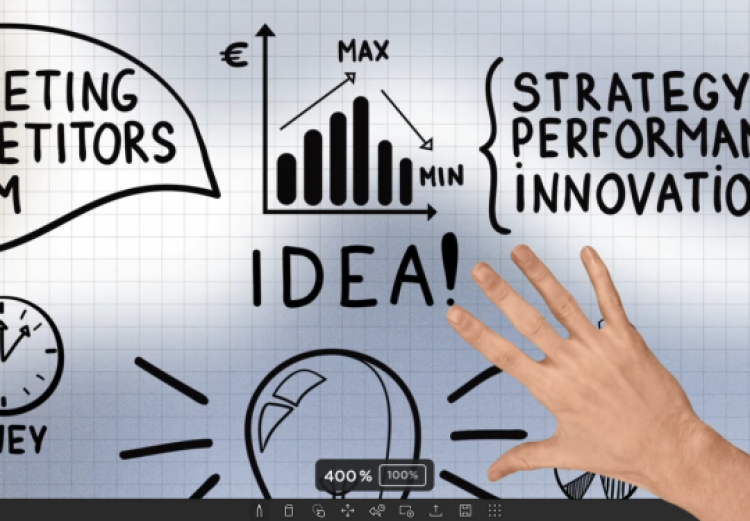 全新一代的联想智慧白板软件再度升级扩大画布的缩放阈值,支持从25%至400%的超大范围缩放,用户可通过按压缩放、按压拖动,在“无边画布”上肆意挥洒灵感。