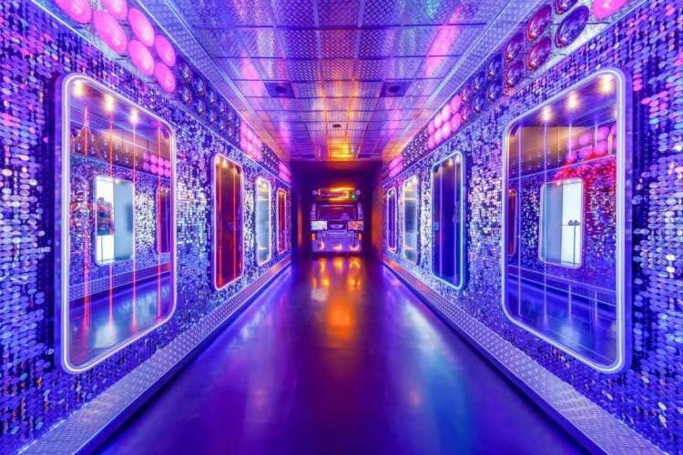 最令人惊喜的莫过于这个“搜藏之家”了,观众们进入这个房间后,基本都会发出一声“哇”的惊叹。其实这里展示的是品牌在2018秋冬系列广告片中的众多单品,又通过镜面反射,形成了令人炫目的装饰效果。