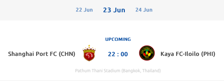 上海海港和菲律宾卡雅FC附加赛的具体比赛时间是北京时间6月23日晚上10点,也就是泰国当地时间晚上9点。
