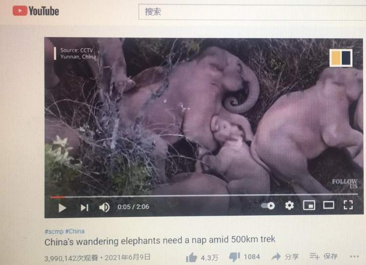 浏览Youtube网站,可以发现,称云南北迁大象为“流量明星”并不为过。