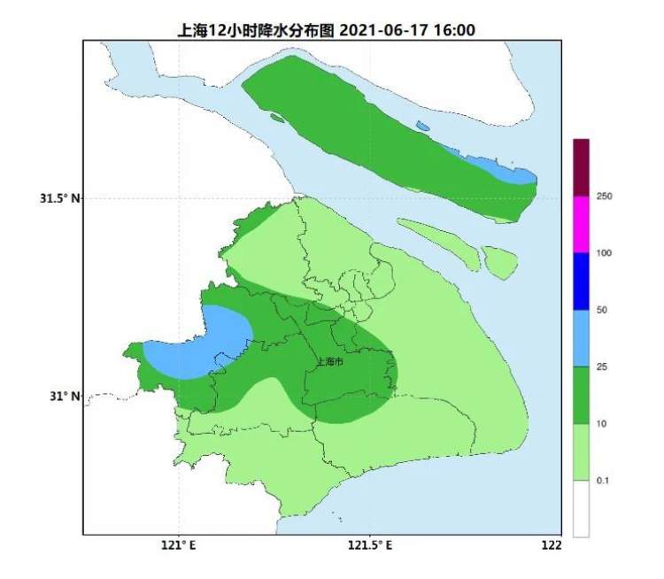 截至18时,12小时累积雨量显示:今天的雨量“冠军”是崇明新海镇,超过了37毫米。