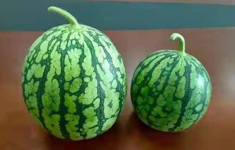 小型西瓜重量一般在1至4斤之间。结果时,有的藤上结一个瓜,有的藤上会结2个瓜,甚至3个瓜,就好比妈妈有时生一胎,有时会同时生二胎、生三胎一样。”