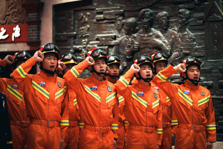 6月17日上午,虹口区消防救援支队在中共四大纪念馆举行“永远跟党走”庆祝中国共产党成立100周年音乐党课暨《虹口消防的百年百人百事》首发仪式。