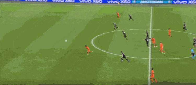 第9分钟,邓弗里斯在禁区内为荷兰制造了一粒点球。