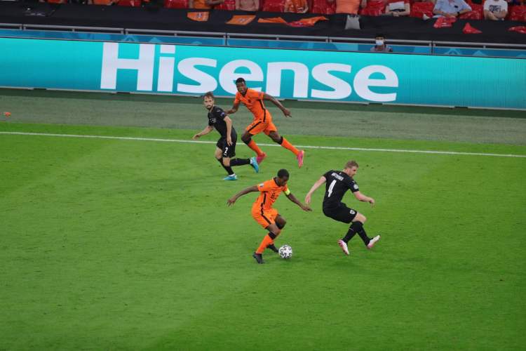 在荷兰与乌克兰2比2战平之际,邓弗里斯在最后时刻用一记头球破门为比赛一锤定音。
