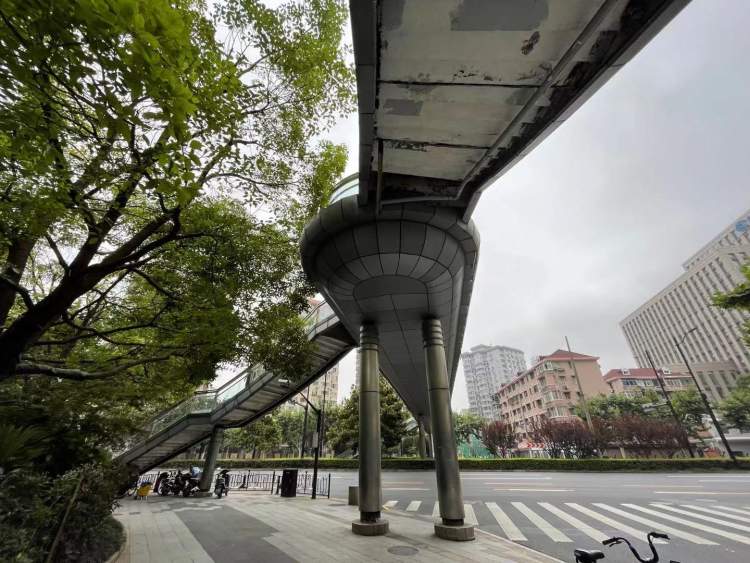位于徐虹北路虹桥路的这座人行天桥,据周边居民回忆,已经有20多年的历史了,从外观上,我们也不难看出它的沧桑。