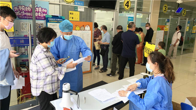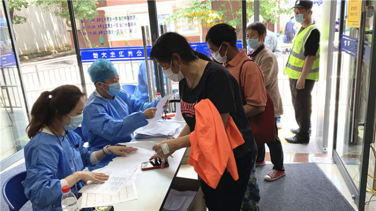预检工作几个小时下来,郭晨君早已口干舌燥。可往往来不及喝上一口水,他又要忙着维护现场秩序以及处置排队过程中各种突发情况。“有时候我们正耐心解答居民提出的问题,排在后面的居民就开始各种不耐烦,一个劲地不停催促。”面对这种情况,郭晨君始终将“微笑服务”一以贯之,及时安抚居民因排队时间过长而产生的焦躁情绪。