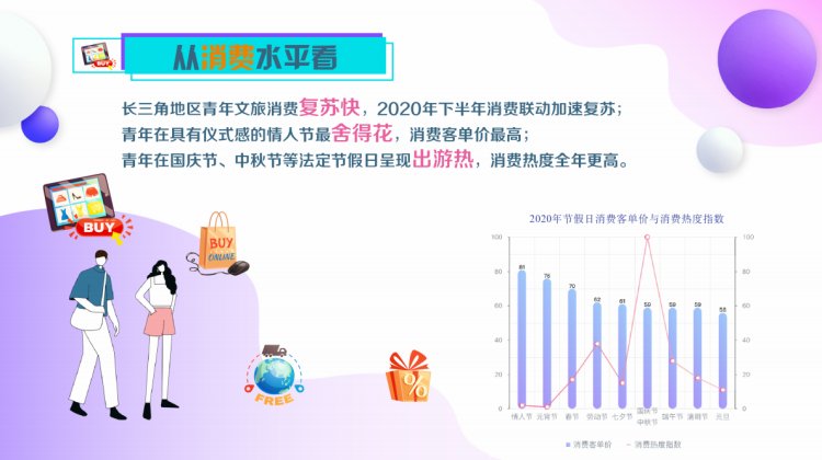 根据报告,长三角青年消费总体显示以下三大特点:一体联动充分,呈“强互动、引领性”特点;文旅消费活力强劲,呈“都市圈、行无界”特点;保持高增长,呈“潮乐玩、文艺范”特点。