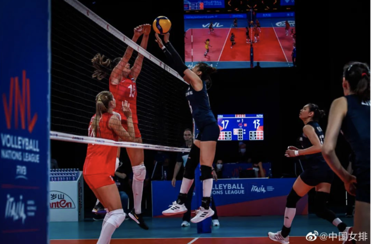 全场比赛,队长朱婷拿到15分,李盈莹得到19分。