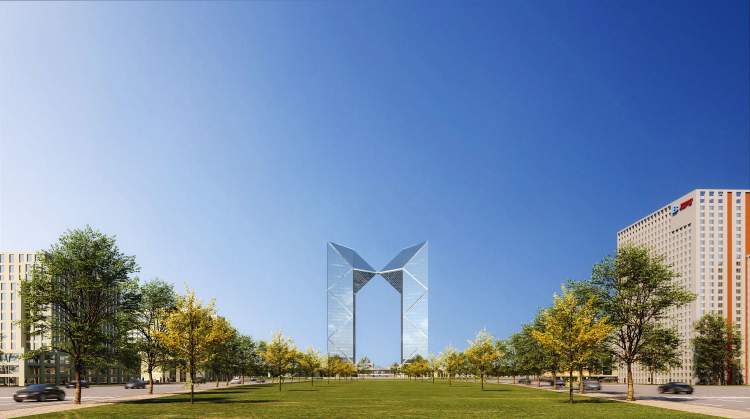 该项目由中建二局华东公司参与承建,中建二局华东公司中银金融中心项目设计总监王贺介绍,两座双子塔楼以 “时代之门 璀璨之珠”为建筑意象,立面巨型斜撑蕴含中银集团经典建筑元素,上部锥形形体彼此相连,呈“1”的造型相向而立,寓意在”两个一百年“交汇的重要时刻,不忘初心铸就“时代之门,璀璨之珠”。