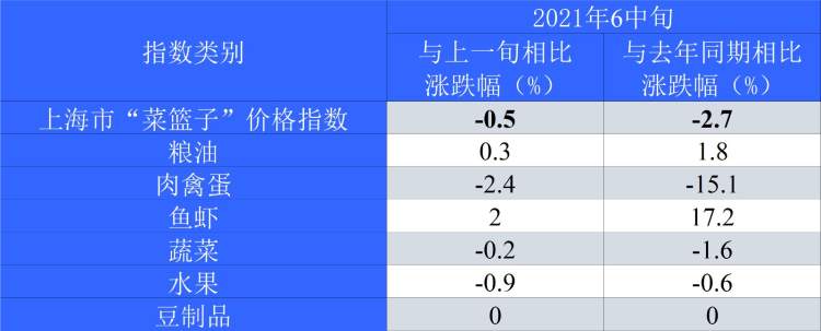 2021年6月中旬上海市“菜篮子”价格指数数据表