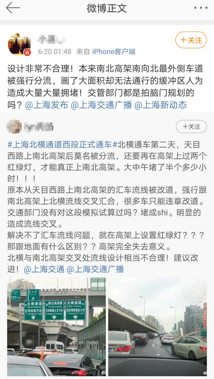 对此,大量市民质疑,北横通道西段开通之后,高架上确实通畅了,但是路面的拥堵情况也不该忽视,呼吁现有的道路通行方案可以做出调整。