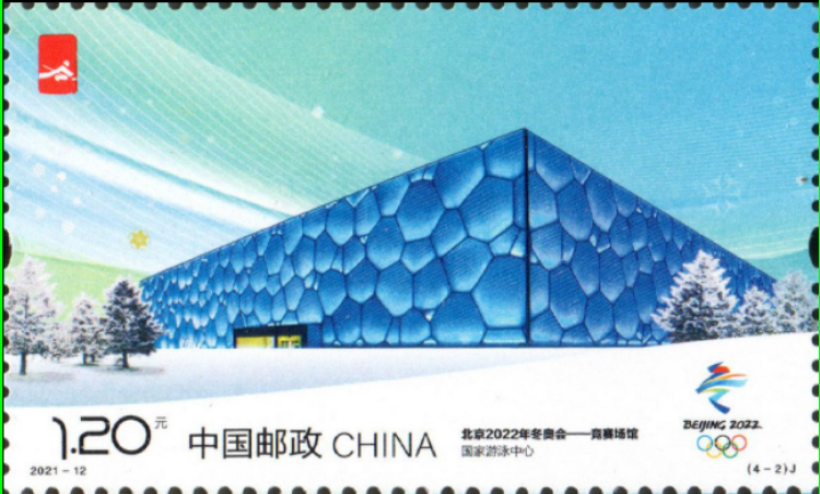 《北京2022年冬奥会——竞赛场馆》纪念邮票内容包括首钢大跳台、国家游泳中心、国家跳台滑雪中心、国家雪车雪橇中心,小型张为国家速滑馆。