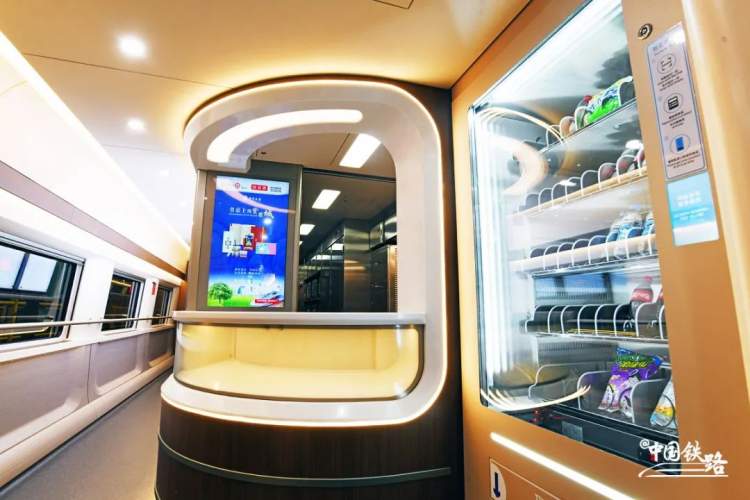 餐车增设1台自动售货机,可为旅客提供自助购买水果、饮料、零食等服务。