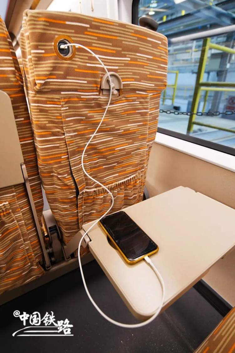 二等座椅靠背上增加了USB充电接口,方便旅客使用手机和充电。