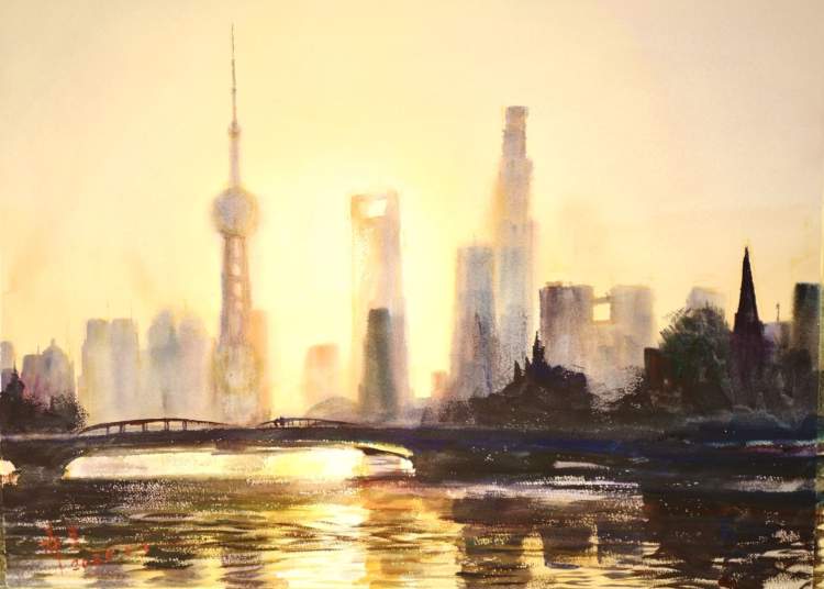 外滩历史建筑群虽走过了百年沧桑岁月,但在陈希旦的笔下,外滩却表现出有一种让人赏心悦目的轻快、通透和活泼。