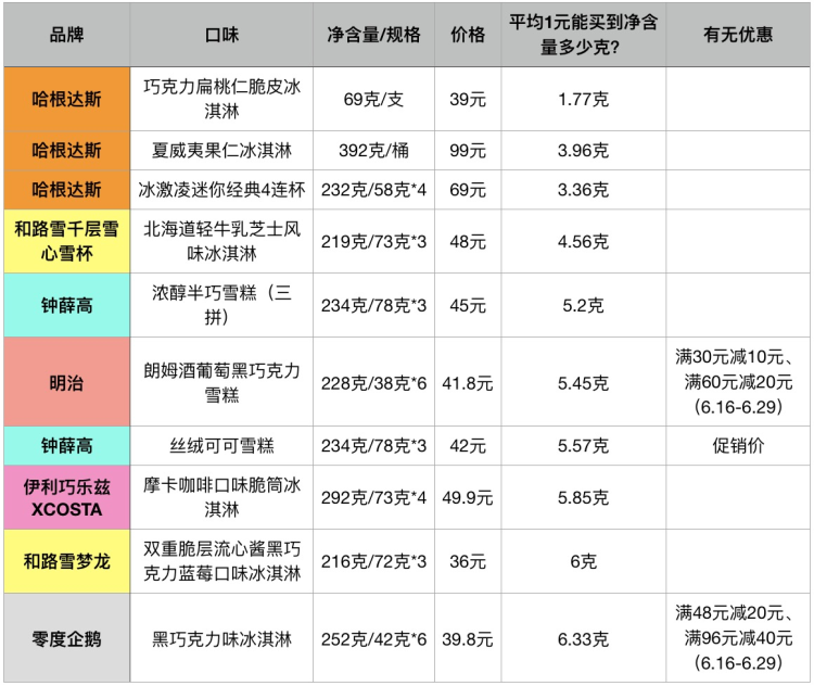 ✍️ 一直以来,哈根达斯、钟薛高等品牌都给人很贵的印象,梦龙、明治似乎也不便宜。列个表格看一看,谁才是冷饮中的“身价”更高的?