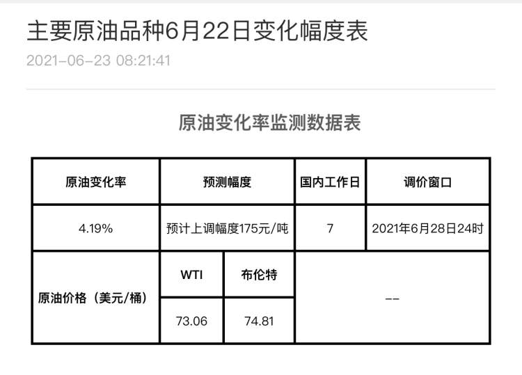 根据卓创资讯的数据,截至今天上午,原油变化率为4.19%,目前预计上调油价175元/吨,折合升计算为上涨油价0.14元/升-0.15元/升,按照目前的升价计算,上海的92号汽油有可能进入“7元”时代。